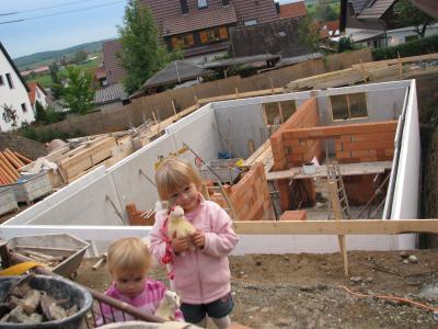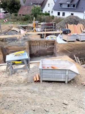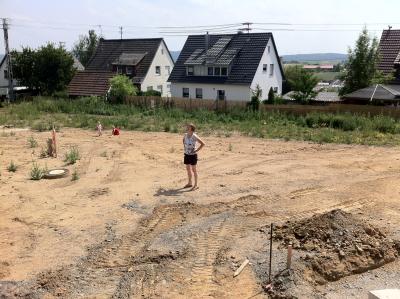 Baugrube für die Zisterne, links neben der Baugrube für das Haus